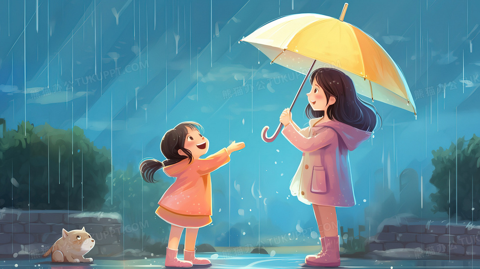 本作品内容为卡通风可爱的女孩和妈妈的淋雨, 格式为 jpg, 大小3 MB, 图片尺寸为2912 x 1632, 源文件无水印, 欢迎使用熊猫办公。 如认为平台内容涉嫌侵权,可通过邮件:tousu@tukuppt.com提出书面通知,我们将及时处理。