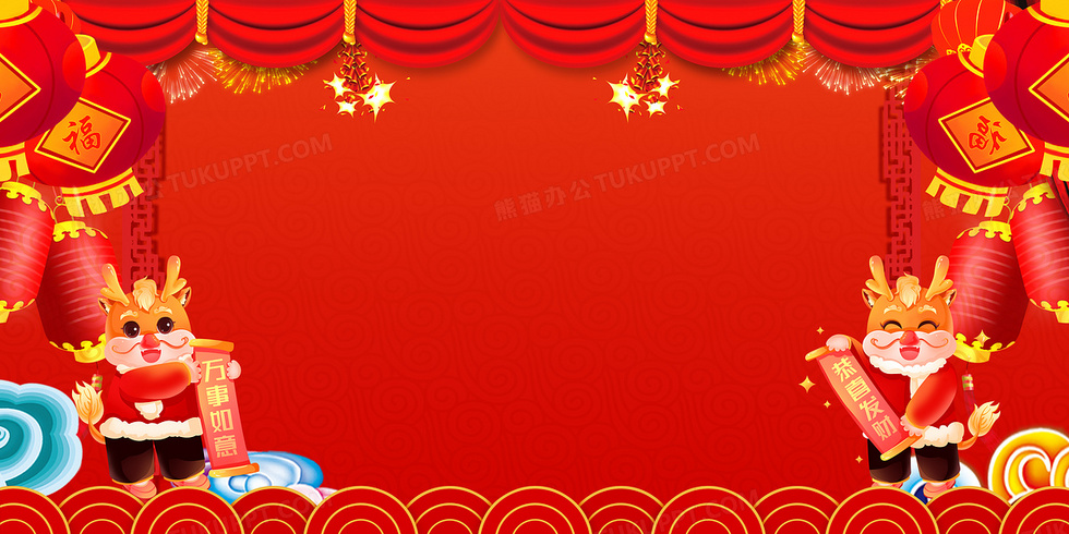 本作品内容为龙年2024年红色新年背景, 格式为 psd, 大小59 MB, 图片尺寸为4724 x 2362, 作品中背景图片无需修改, 源文件无水印,可以直接使用, 欢迎使用熊猫办公。 如认为平台内容涉嫌侵权,可通过邮件:tousu@tukuppt.com提出书面通知,我们将及时处理。
