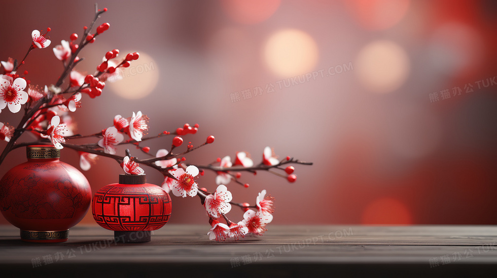 本作品内容为红色喜庆腊梅花中国风背景图, 格式为 jpg, 大小5 MB, 图片尺寸为2912 x 1632, 源文件无水印, 欢迎使用熊猫办公。 如认为平台内容涉嫌侵权,可通过邮件:tousu@tukuppt.com提出书面通知,我们将及时处理。