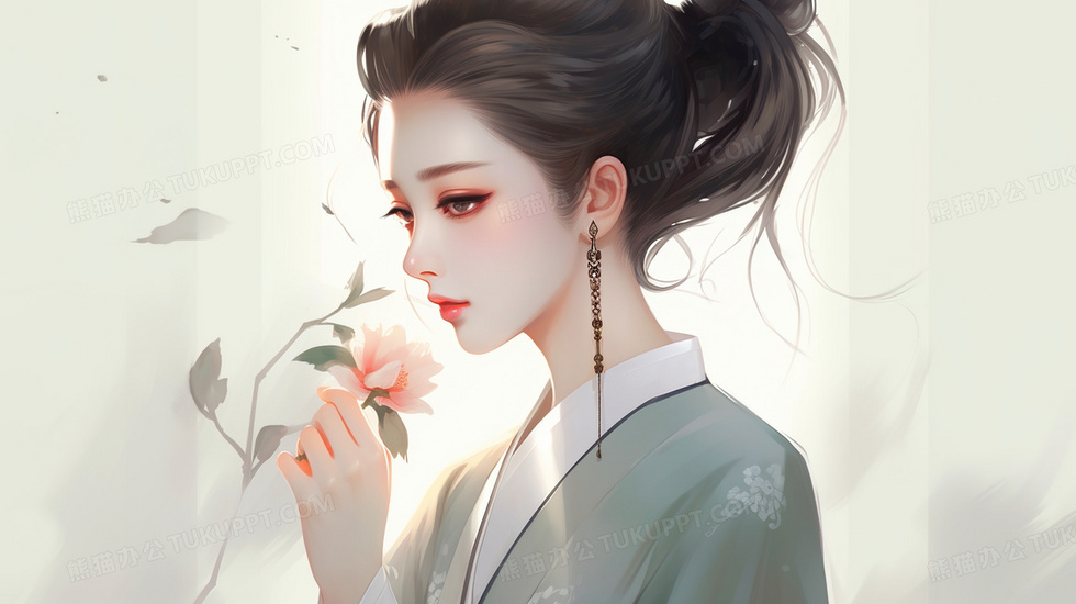 本作品内容为传统古典中国风美女插画, 格式为 jpg, 大小4 MB, 图片尺寸为2912 x 1632, 源文件无水印, 欢迎使用熊猫办公。 如认为平台内容涉嫌侵权,可通过邮件:tousu@tukuppt.com提出书面通知,我们将及时处理。