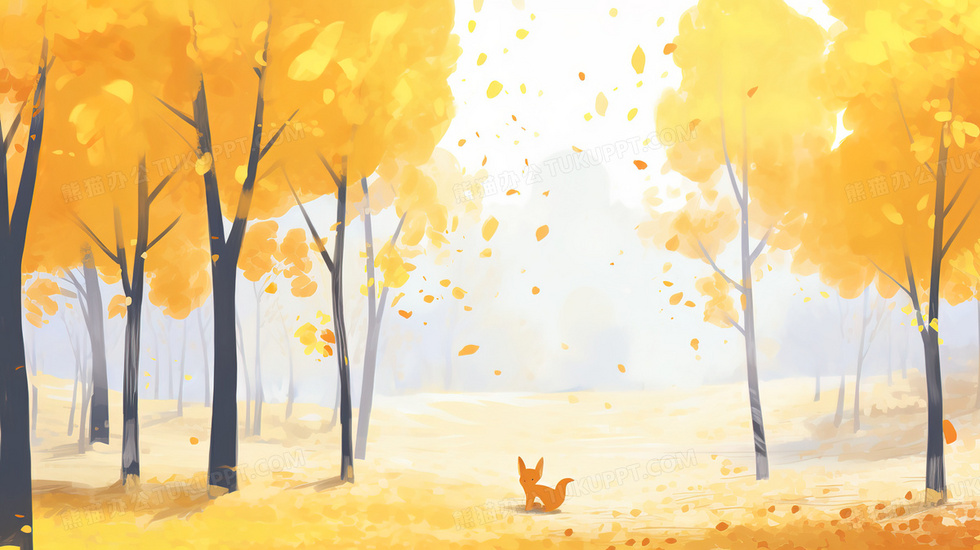 本作品内容为秋天金色树林落叶纷飞风景插画, 格式为 jpg, 大小4 MB, 图片尺寸为2912 x 1632, 源文件无水印, 欢迎使用熊猫办公。 如认为平台内容涉嫌侵权,可通过邮件:tousu@tukuppt.com提出书面通知,我们将及时处理。