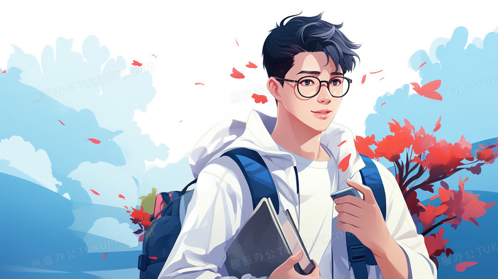 本作品内容为走在校园里的阳光男大学生青春插画, 格式为 jpg, 大小4 MB, 图片尺寸为2912 x 1632, 源文件无水印, 欢迎使用熊猫办公。 如认为平台内容涉嫌侵权,可通过邮件:tousu@tukuppt.com提出书面通知,我们将及时处理。