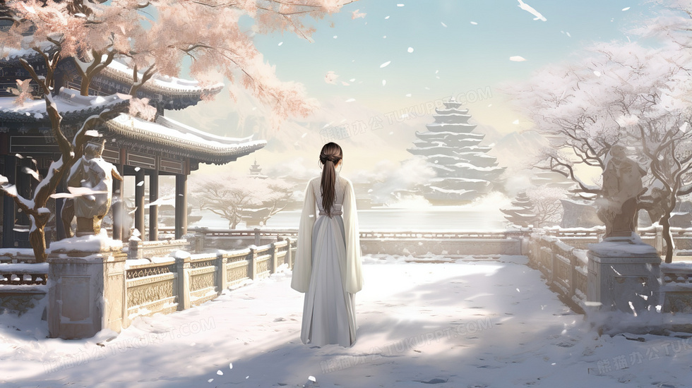本作品内容为冬日里一个中国古典美人在庭院里观看雪景插画, 格式为 jpg, 大小6 MB, 图片尺寸为2912 x 1632, 源文件无水印, 欢迎使用熊猫办公。 如认为平台内容涉嫌侵权,可通过邮件:tousu@tukuppt.com提出书面通知,我们将及时处理。