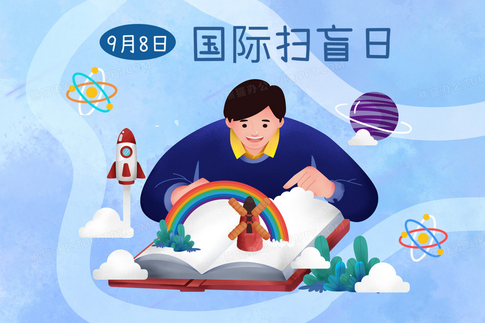 本作品内容为国际扫盲日男孩沉浸在知识的世界里场景插画, 格式为 psd, 大小20 MB, 请使用软件PhotoShop(CC)打开, 源文件无水印, 欢迎使用熊猫办公。 如认为平台内容涉嫌侵权,可通过邮件:tousu@tukuppt.com提出书面通知,我们将及时处理。