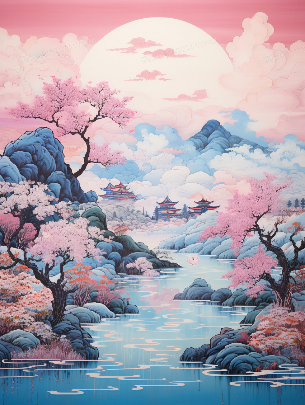 首页 > 插画 > 科技艺术 > 国潮风 > 中国风唯美意境山水建筑风景插画