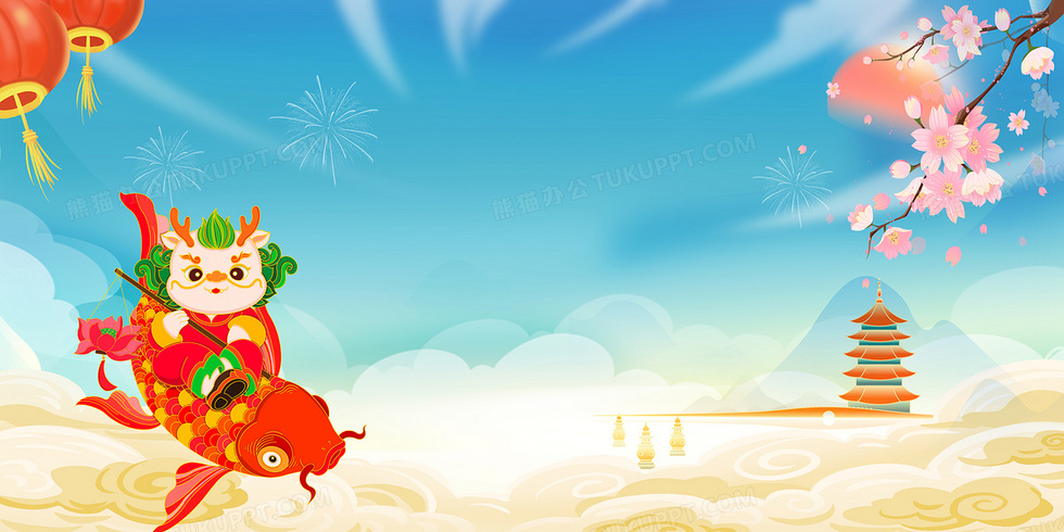 本作品内容为龙年新年锦鲤2024中国风新年背景, 格式为 psd, 大小30 MB, 图片尺寸为4724 x 2362, 作品中背景图片无需修改, 源文件无水印,可以直接使用, 欢迎使用熊猫办公。 如认为平台内容涉嫌侵权,可通过邮件:tousu@tukuppt.com提出书面通知,我们将及时处理。