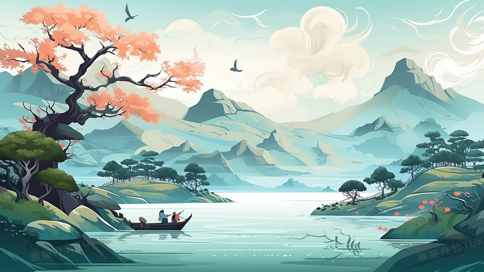 本作品内容为中国风山水钓鱼古风场景插画, 格式为 jpg, 大小5 MB, 图片尺寸为2912 x 1632, 源文件无水印, 欢迎使用熊猫办公。 如认为平台内容涉嫌侵权,可通过邮件:tousu@tukuppt.com提出书面通知,我们将及时处理。