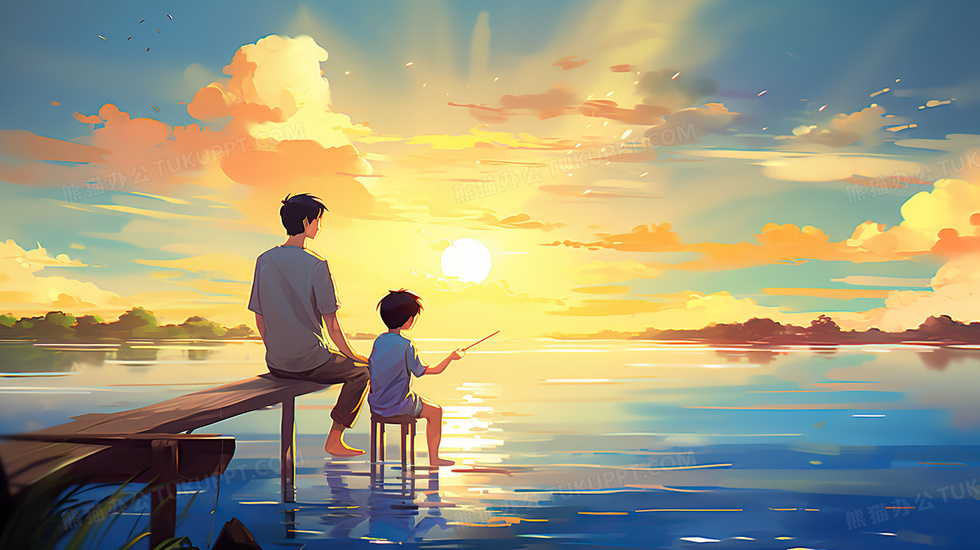 本作品内容为卡通父子在河边钓鱼场景插画, 格式为 jpg, 大小5 MB, 图片尺寸为2912 x 1632, 源文件无水印, 欢迎使用熊猫办公。 如认为平台内容涉嫌侵权,可通过邮件:tousu@tukuppt.com提出书面通知,我们将及时处理。