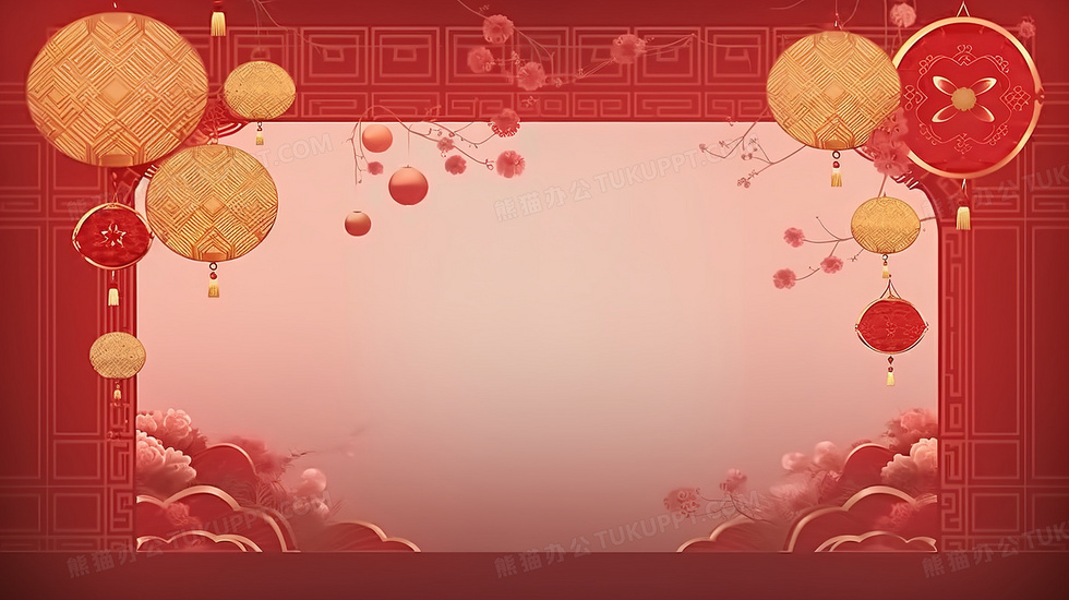 本作品内容为迎春节红色古建筑灯笼展示框插画, 格式为 jpg, 大小5 MB, 图片尺寸为2912 x 1632, 源文件无水印, 欢迎使用熊猫办公。 如认为平台内容涉嫌侵权,可通过邮件:tousu@tukuppt.com提出书面通知,我们将及时处理。