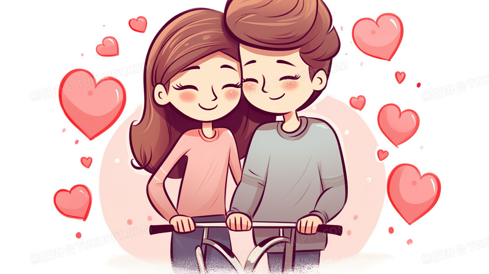 本作品内容为一起骑自行车的情侣插画, 格式为 jpg, 大小4 MB, 图片尺寸为2912 x 1632, 源文件无水印, 欢迎使用熊猫办公。 如认为平台内容涉嫌侵权,可通过邮件:tousu@tukuppt.com提出书面通知,我们将及时处理。