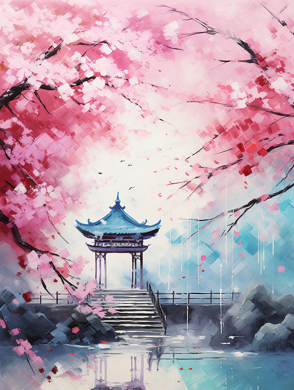 本作品内容为中国风山水樱花唯美风景插画, 格式为 jpg, 大小8 MB, 图片尺寸为1856 x 2464, 源文件无水印, 欢迎使用熊猫办公。 如认为平台内容涉嫌侵权,可通过邮件:tousu@tukuppt.com提出书面通知,我们将及时处理。
