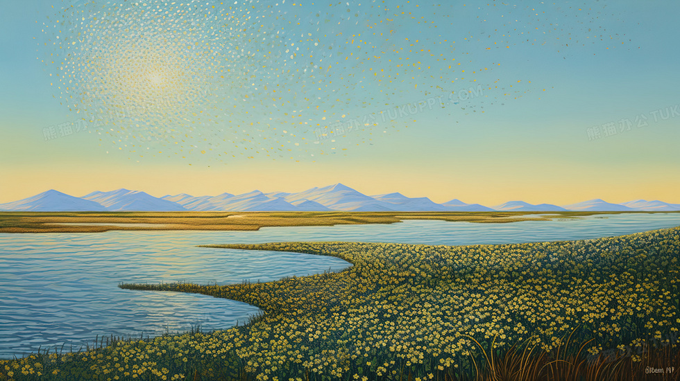 本作品内容为简约湖面春季风景插画, 格式为 jpg, 大小7 MB, 图片尺寸为2912 x 1632, 源文件无水印, 欢迎使用熊猫办公。 如认为平台内容涉嫌侵权,可通过邮件:tousu@tukuppt.com提出书面通知,我们将及时处理。