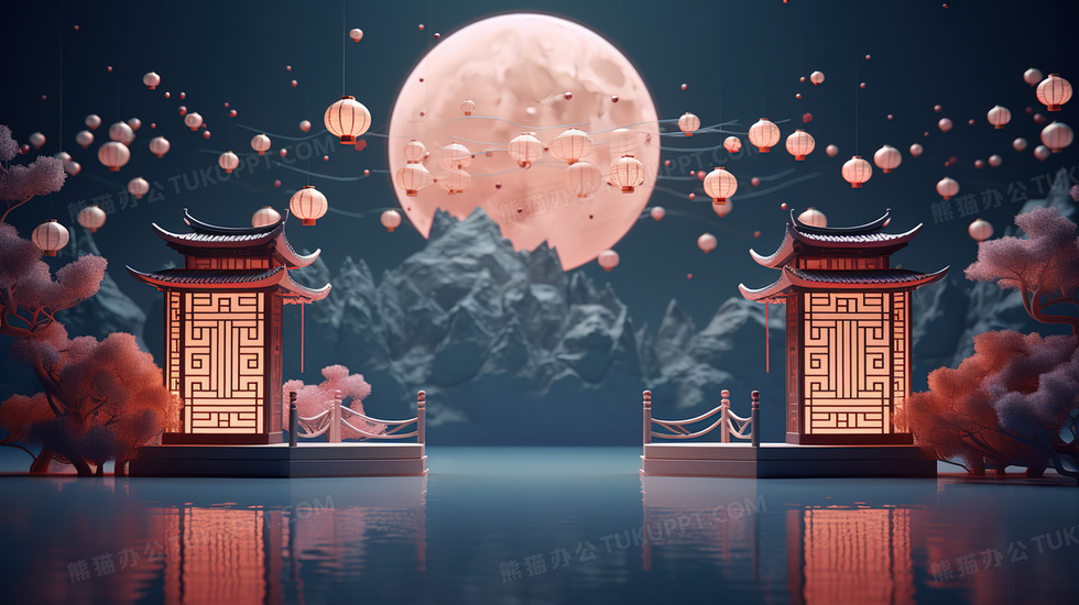 本作品内容为圆月灯笼古建筑中秋节插画, 格式为 jpg, 大小5 MB, 图片尺寸为2912 x 1632, 源文件无水印, 欢迎使用熊猫办公。 如认为平台内容涉嫌侵权,可通过邮件:tousu@tukuppt.com提出书面通知,我们将及时处理。