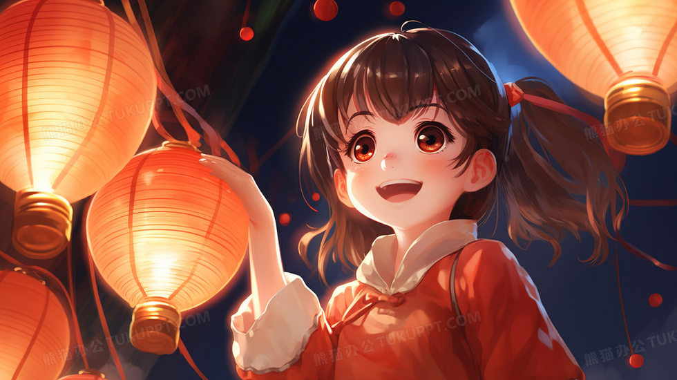 本作品内容为可爱小女孩挂灯笼插画, 格式为 jpg, 大小5 MB, 图片尺寸为2912 x 1632, 源文件无水印, 欢迎使用熊猫办公。 如认为平台内容涉嫌侵权,可通过邮件:tousu@tukuppt.com提出书面通知,我们将及时处理。