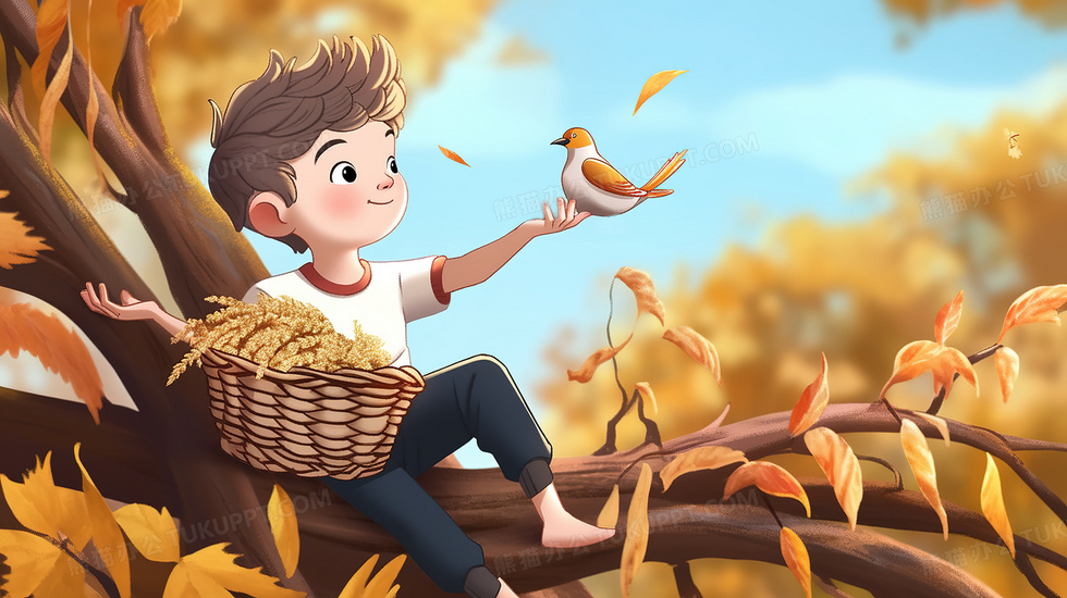 本作品内容为秋天可爱的男孩坐在树上给小鸟喂食创意插画, 格式为 jpg, 大小6 MB, 图片尺寸为2912 x 1632, 源文件无水印, 欢迎使用熊猫办公。 如认为平台内容涉嫌侵权,可通过邮件:tousu@tukuppt.com提出书面通知,我们将及时处理。