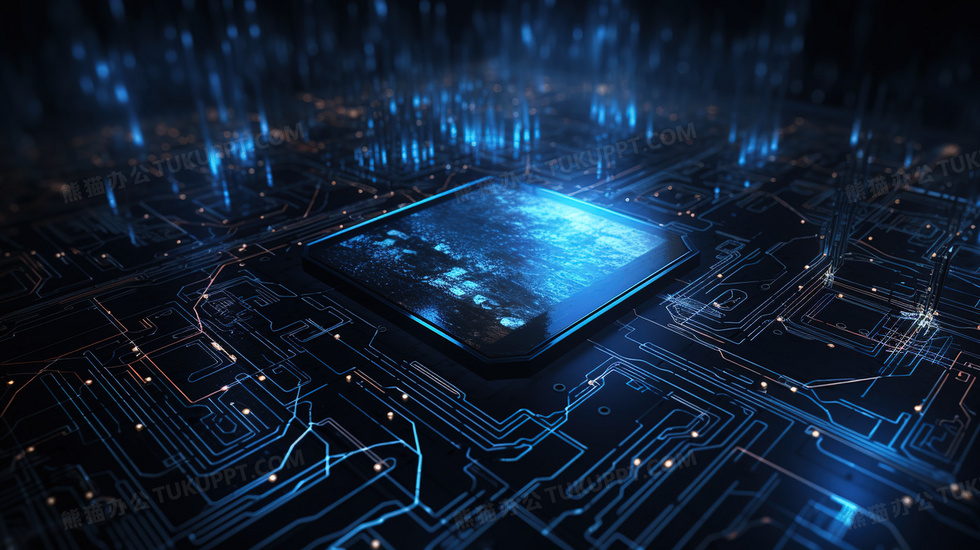 本作品内容为蓝色科技感电子芯片插画, 格式为 jpg, 大小6 MB, 图片尺寸为2912 x 1632, 源文件无水印, 欢迎使用熊猫办公。 如认为平台内容涉嫌侵权,可通过邮件:tousu@tukuppt.com提出书面通知,我们将及时处理。