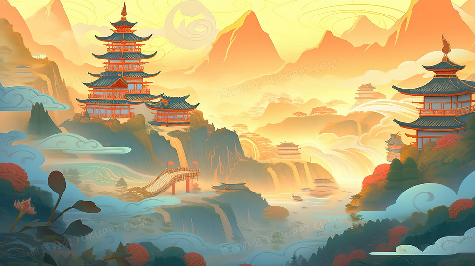 本作品内容为 大气雅致国潮中国风山水风景画, 格式为 jpg, 大小6 MB, 图片尺寸为2912 x 1632, 源文件无水印, 欢迎使用熊猫办公。 如认为平台内容涉嫌侵权,可通过邮件:tousu@tukuppt.com提出书面通知,我们将及时处理。