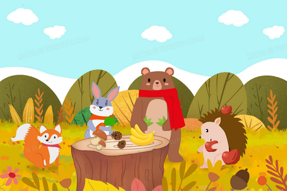 本作品内容为秋天森林小动物野餐手绘插画, 格式为 psd, 大小40 MB, 请使用软件PhotoShop(CS6)打开, 源文件无水印, 欢迎使用熊猫办公。 如认为平台内容涉嫌侵权,可通过邮件:tousu@tukuppt.com提出书面通知,我们将及时处理。