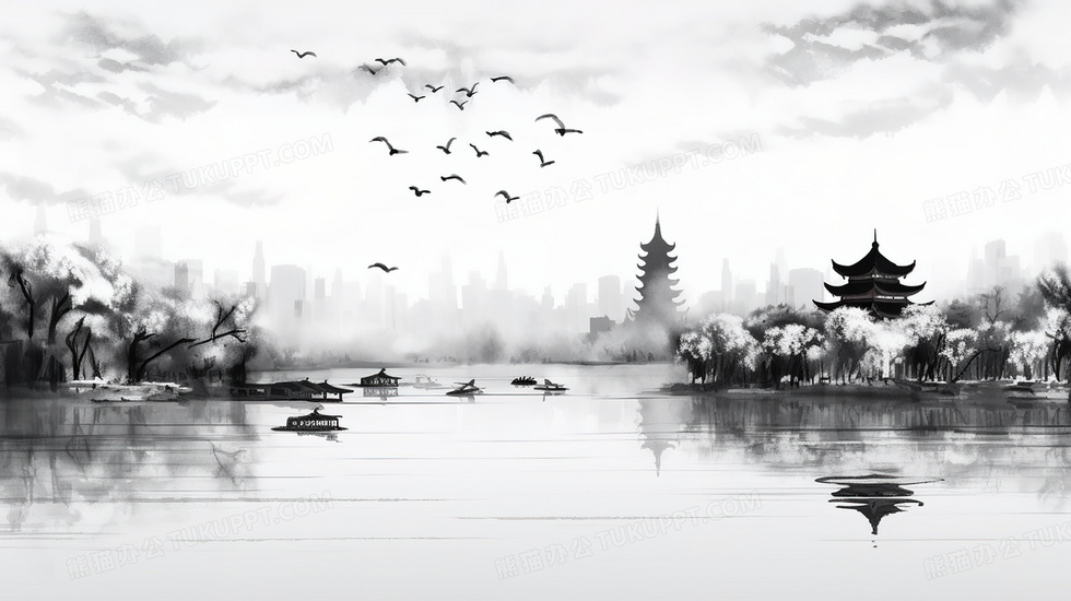 本作品内容为中国风山水风景黑白水墨插画, 格式为 jpg, 大小6 MB, 图片尺寸为2912 x 1632, 源文件无水印, 欢迎使用熊猫办公。 如认为平台内容涉嫌侵权,可通过邮件:tousu@tukuppt.com提出书面通知,我们将及时处理。