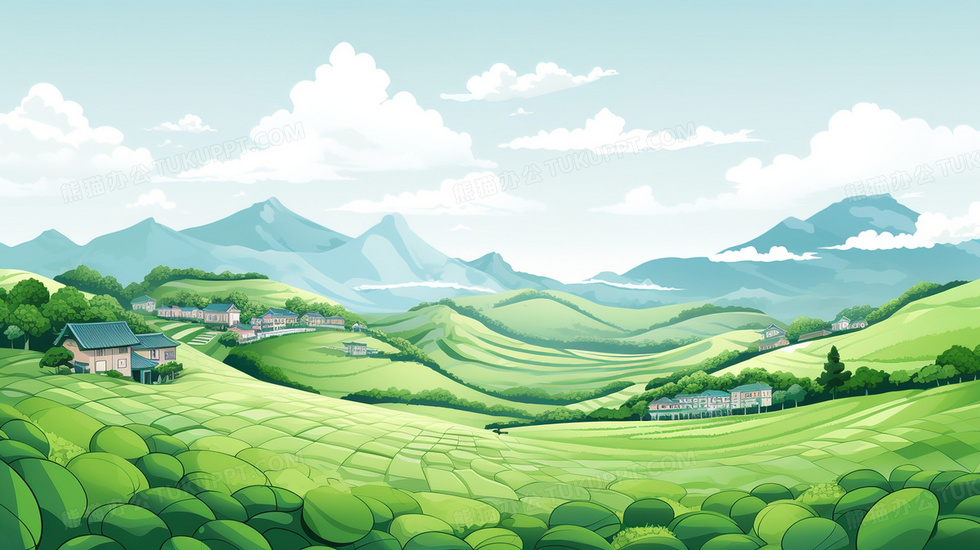 本作品内容为春季乡村高山耕地插画, 格式为 jpg, 大小3 MB, 图片尺寸为2912 x 1632, 源文件无水印, 欢迎使用熊猫办公。 如认为平台内容涉嫌侵权,可通过邮件:tousu@tukuppt.com提出书面通知,我们将及时处理。