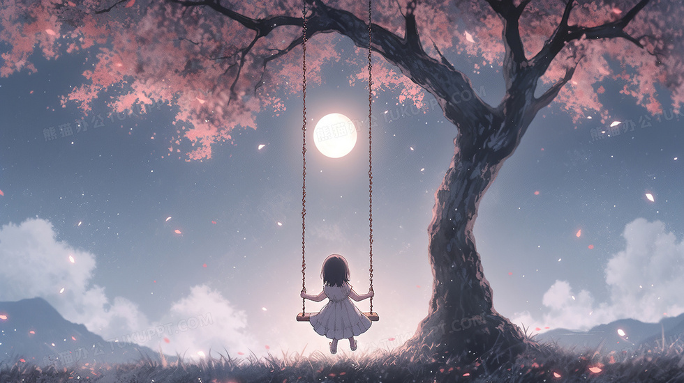 本作品内容为月光下一个可爱的女生在树下荡秋千插画, 格式为 jpg, 大小3 MB, 图片尺寸为2912 x 1632, 源文件无水印, 欢迎使用熊猫办公。 如认为平台内容涉嫌侵权,可通过邮件:tousu@tukuppt.com提出书面通知,我们将及时处理。