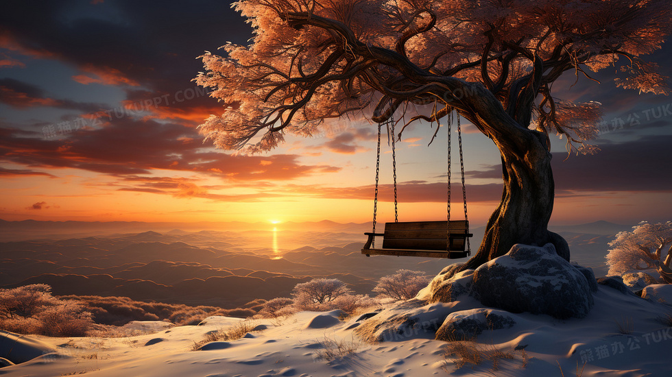 本作品内容为冬天大树下秋千旁美丽的晚霞雪景插画, 格式为 jpg, 大小4 MB, 图片尺寸为2912 x 1632, 源文件无水印, 欢迎使用熊猫办公。 如认为平台内容涉嫌侵权,可通过邮件:tousu@tukuppt.com提出书面通知,我们将及时处理。