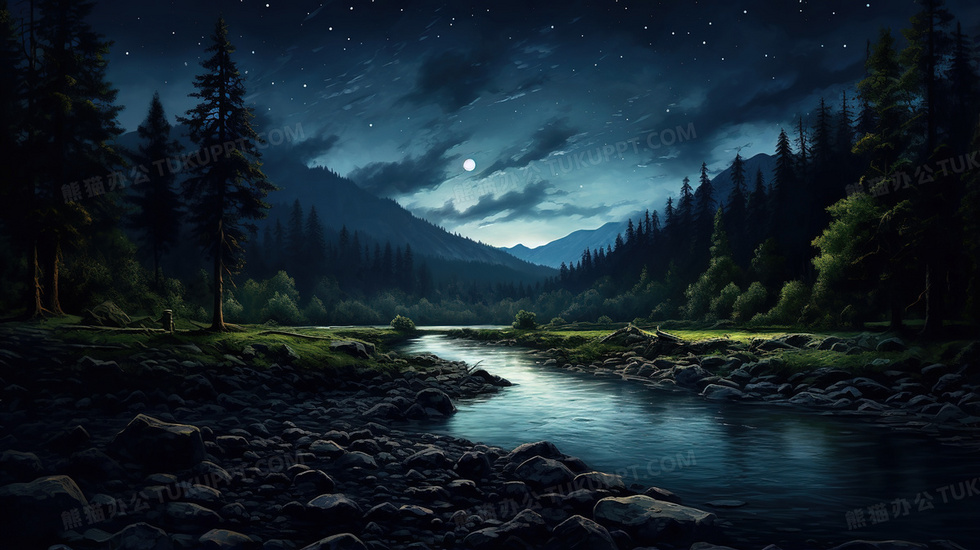 本作品内容为自然风景唯美夜色插画, 格式为 jpg, 大小6 MB, 图片尺寸为2912 x 1632, 源文件无水印, 欢迎使用熊猫办公。 如认为平台内容涉嫌侵权,可通过邮件:tousu@tukuppt.com提出书面通知,我们将及时处理。