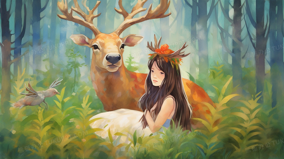 本作品内容为女孩和驯鹿唯美清新麋鹿森林女孩插画, 格式为 jpg, 大小7 MB, 图片尺寸为2912 x 1632, 源文件无水印, 欢迎使用熊猫办公。 如认为平台内容涉嫌侵权,可通过邮件:tousu@tukuppt.com提出书面通知,我们将及时处理。