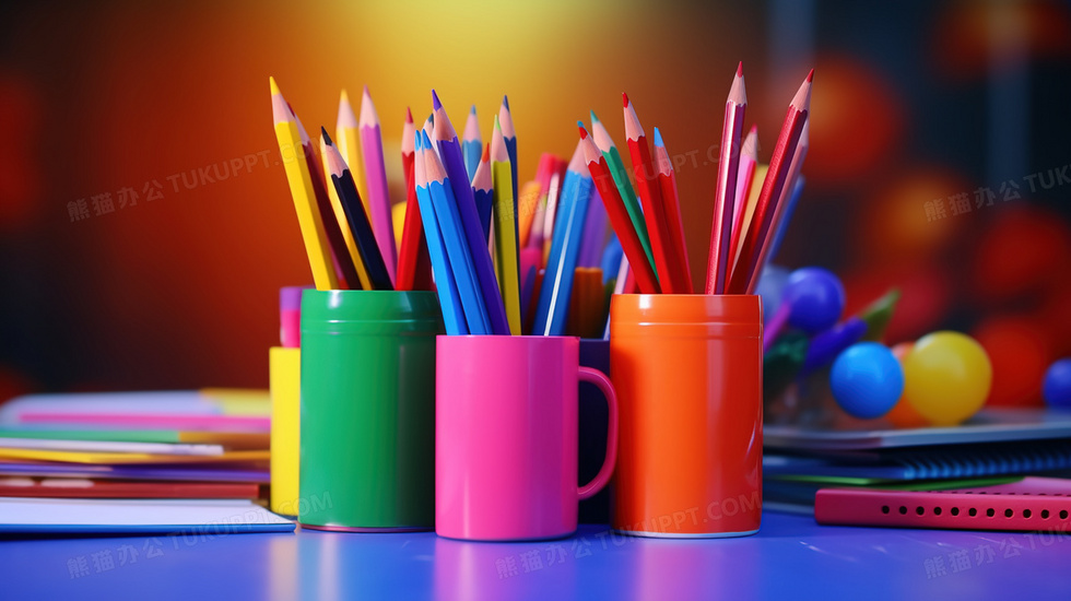 本作品内容为书桌上笔筒里的彩色铅笔文具插画, 格式为 jpg, 大小4 MB, 图片尺寸为2912 x 1632, 源文件无水印, 欢迎使用熊猫办公。 如认为平台内容涉嫌侵权,可通过邮件:tousu@tukuppt.com提出书面通知,我们将及时处理。