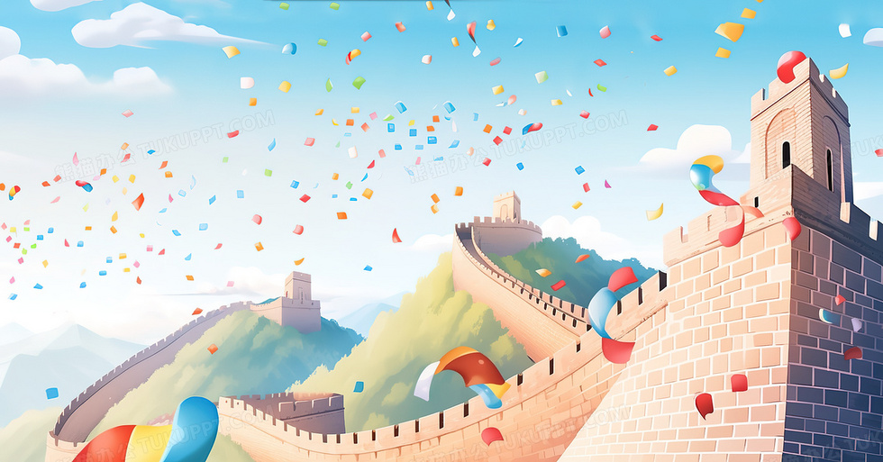 本作品内容为长城上空彩带飞舞欢庆国庆节创意插画, 格式为 jpg, 大小5 MB, 图片尺寸为2912 x 1524, 源文件无水印, 欢迎使用熊猫办公。 如认为平台内容涉嫌侵权,可通过邮件:tousu@tukuppt.com提出书面通知,我们将及时处理。