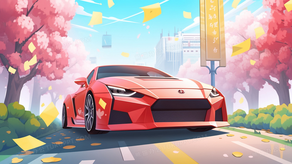 本作品内容为道路上飞驰的红色酷炫跑车插画, 格式为 jpg, 大小4 MB, 图片尺寸为2912 x 1632, 源文件无水印, 欢迎使用熊猫办公。 如认为平台内容涉嫌侵权,可通过邮件:tousu@tukuppt.com提出书面通知,我们将及时处理。