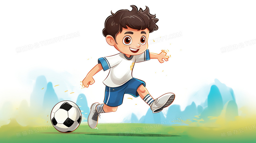 本作品内容为草地上踢足球的小男孩插画, 格式为 jpg, 大小4 MB, 图片尺寸为2912 x 1632, 源文件无水印, 欢迎使用熊猫办公。 如认为平台内容涉嫌侵权,可通过邮件:tousu@tukuppt.com提出书面通知,我们将及时处理。
