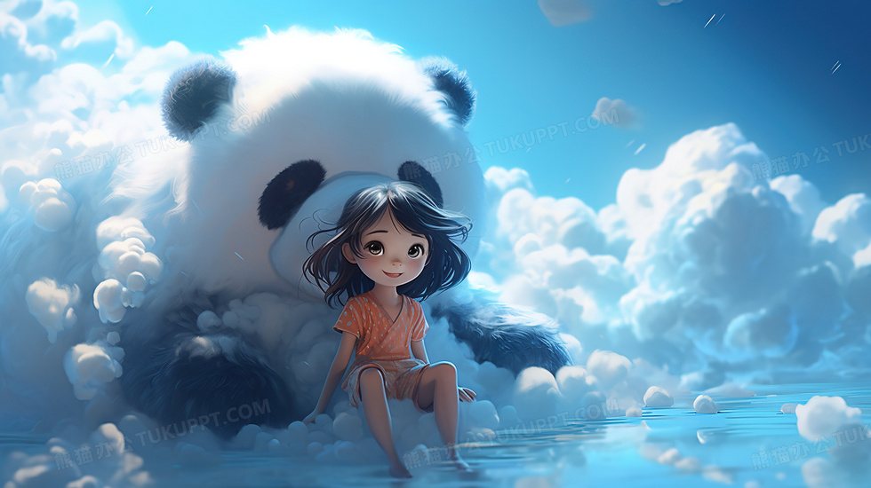 本作品内容为可爱大熊猫抱着小女孩坐在云团上插画, 格式为 jpg, 大小6 MB, 图片尺寸为2912 x 1632, 源文件无水印, 欢迎使用熊猫办公。 如认为平台内容涉嫌侵权,可通过邮件:tousu@tukuppt.com提出书面通知,我们将及时处理。