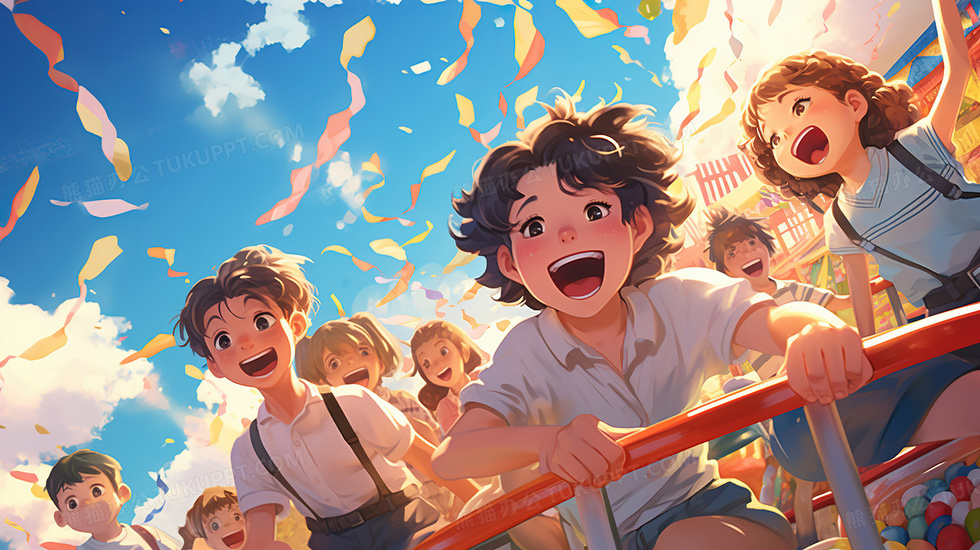 本作品内容为节日里欢呼雀跃庆祝的孩子们插画, 格式为 jpg, 大小6 MB, 图片尺寸为2912 x 1632, 源文件无水印, 欢迎使用熊猫办公。 如认为平台内容涉嫌侵权,可通过邮件:tousu@tukuppt.com提出书面通知,我们将及时处理。