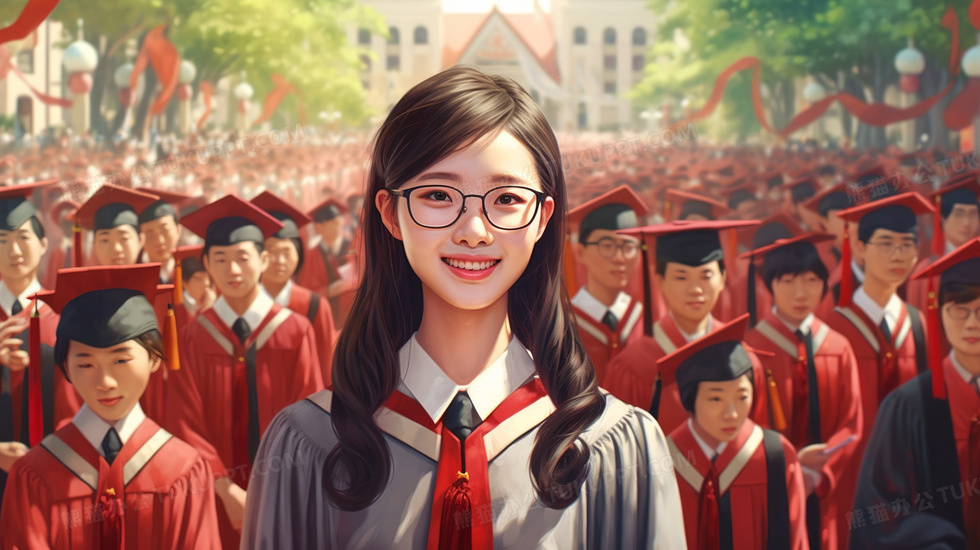 首页 > 插画 > 科技艺术 > 其他 > 毕业典礼上女生穿着学士服开心的笑了