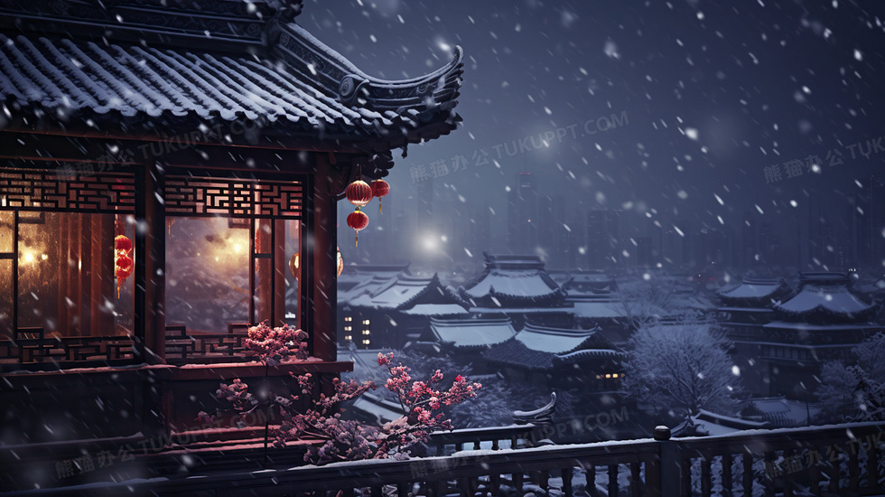 本作品内容为中国风冬天风景古风建筑插画, 格式为 jpg, 大小6 MB, 图片尺寸为2912 x 1632, 源文件无水印, 欢迎使用熊猫办公。 如认为平台内容涉嫌侵权,可通过邮件:tousu@tukuppt.com提出书面通知,我们将及时处理。