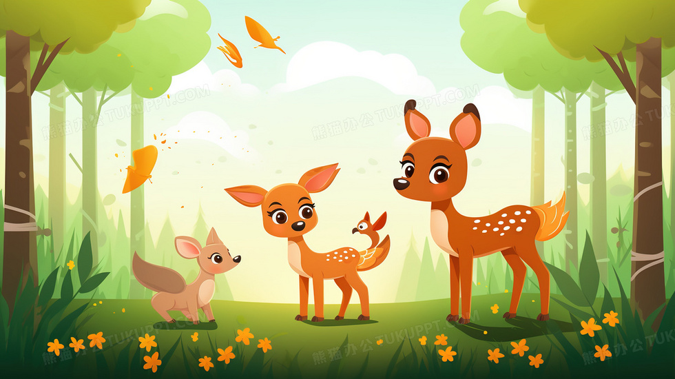 本作品内容为绿色森林草地上幸福的麋鹿一家插画, 格式为 jpg, 大小4 MB, 图片尺寸为2912 x 1632, 源文件无水印, 欢迎使用熊猫办公。 如认为平台内容涉嫌侵权,可通过邮件:tousu@tukuppt.com提出书面通知,我们将及时处理。