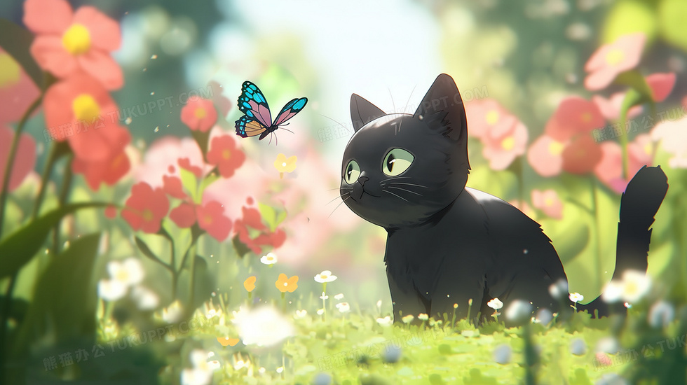 本作品内容为可爱的小猫在花丛中被蝴蝶吸引创意插画, 格式为 jpg, 大小5 MB, 图片尺寸为2912 x 1632, 源文件无水印, 欢迎使用熊猫办公。 如认为平台内容涉嫌侵权,可通过邮件:tousu@tukuppt.com提出书面通知,我们将及时处理。