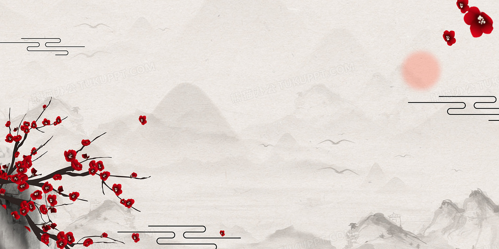 本作品内容为山水古风梅花中国风简约背景, 格式为 psd, 大小56 MB, 图片尺寸为4724 x 2362, 作品中背景图片无需修改, 源文件无水印,可以直接使用, 欢迎使用熊猫办公。 如认为平台内容涉嫌侵权,可通过邮件:tousu@tukuppt.com提出书面通知,我们将及时处理。