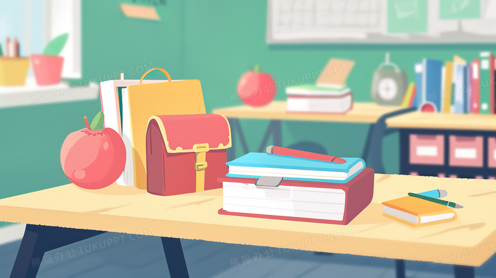 本作品内容为扁平化书桌水果学习用品插画, 格式为 jpg, 大小2 MB, 图片尺寸为2912 x 1632, 源文件无水印, 欢迎使用熊猫办公。 如认为平台内容涉嫌侵权,可通过邮件:tousu@tukuppt.com提出书面通知,我们将及时处理。