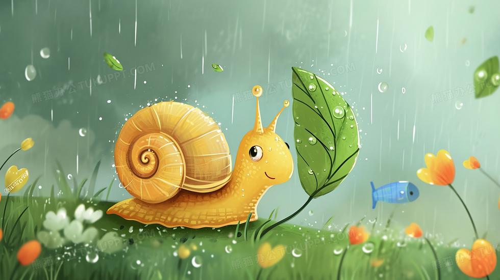 本作品内容为春季下雨水天黄色蜗牛插画, 格式为 jpg, 大小3 MB, 图片尺寸为2912 x 1632, 源文件无水印, 欢迎使用熊猫办公。 如认为平台内容涉嫌侵权,可通过邮件:tousu@tukuppt.com提出书面通知,我们将及时处理。