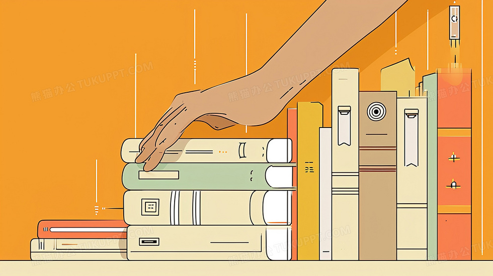 本作品内容为书桌上的整齐摆放的书本和 伸向书本的手插画, 格式为 jpg, 大小2 MB, 图片尺寸为2912 x 1632, 源文件无水印, 欢迎使用熊猫办公。 如认为平台内容涉嫌侵权,可通过邮件:tousu@tukuppt.com提出书面通知,我们将及时处理。