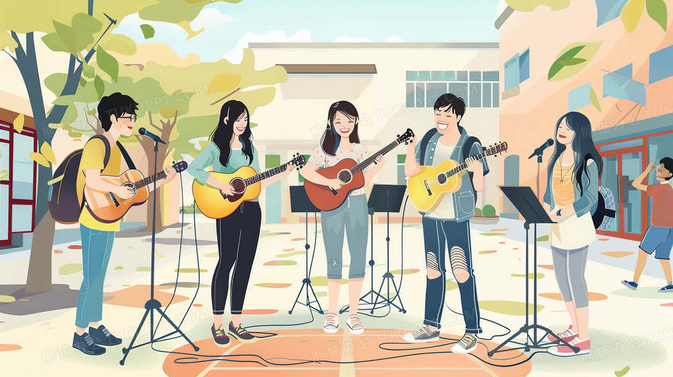 本作品内容为参加音乐社团活动的年轻人插画, 格式为 jpg, 大小3 MB, 图片尺寸为2912 x 1632, 源文件无水印, 欢迎使用熊猫办公。 如认为平台内容涉嫌侵权,可通过邮件:tousu@tukuppt.com提出书面通知,我们将及时处理。