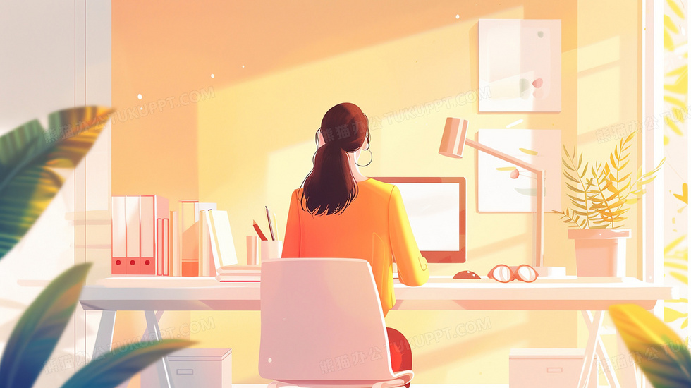 本作品内容为电脑办公的女孩插画, 格式为 jpg, 大小2 MB, 图片尺寸为2912 x 1632, 源文件无水印, 欢迎使用熊猫办公。 如认为平台内容涉嫌侵权,可通过邮件:tousu@tukuppt.com提出书面通知,我们将及时处理。