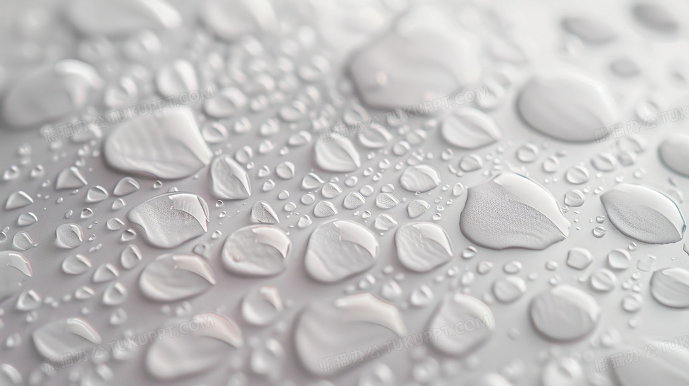 本作品内容为浅色液体水滴纹理背景, 格式为 jpg, 大小2 MB, 图片尺寸为2912 x 1632, 作品中背景图片无需修改, 源文件无水印,可以直接使用, 欢迎使用熊猫办公。 如认为平台内容涉嫌侵权,可通过邮件:tousu@tukuppt.com提出书面通知,我们将及时处理。