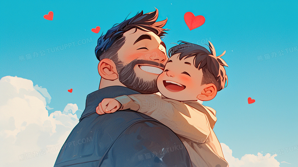本作品内容为父亲节爸爸和儿子拥抱插画, 格式为 jpg, 大小4 MB, 图片尺寸为2912 x 1632, 源文件无水印, 欢迎使用熊猫办公。 如认为平台内容涉嫌侵权,可通过邮件:tousu@tukuppt.com提出书面通知,我们将及时处理。