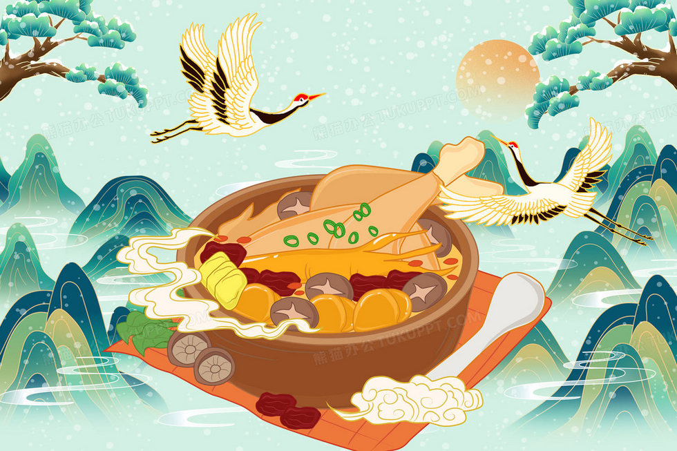 本作品内容为国潮大寒鸡汤食补风景创意插画, 格式为 psd, 大小43 MB, 请使用软件PhotoShop(CS6)打开, 源文件无水印, 欢迎使用熊猫办公。 如认为平台内容涉嫌侵权,可通过邮件:tousu@tukuppt.com提出书面通知,我们将及时处理。