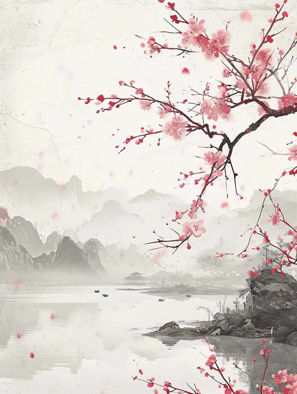 本作品内容为小河旁的粉梅树水墨插画, 格式为 jpg, 大小3 MB, 图片尺寸为1856 x 2464, 源文件无水印, 欢迎使用熊猫办公。 如认为平台内容涉嫌侵权,可通过邮件:tousu@tukuppt.com提出书面通知,我们将及时处理。