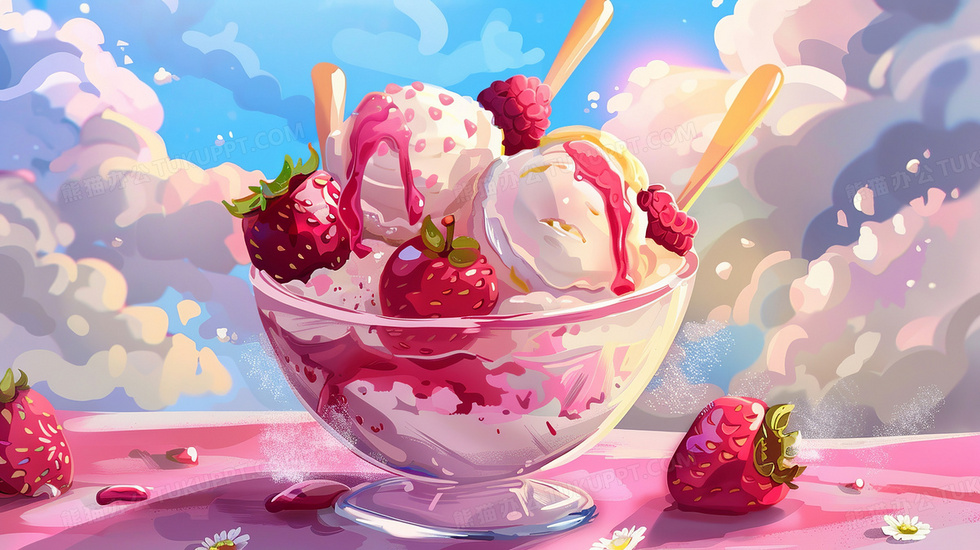 本作品内容为美味的草莓冰淇淋杯插画, 格式为 jpg, 大小3 MB, 图片尺寸为2912 x 1632, 源文件无水印, 欢迎使用熊猫办公。 如认为平台内容涉嫌侵权,可通过邮件:tousu@tukuppt.com提出书面通知,我们将及时处理。