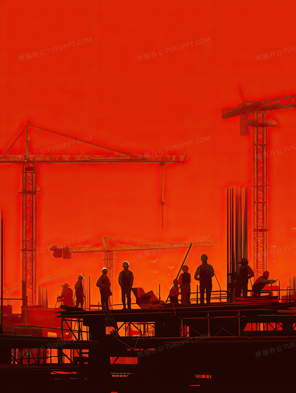 本作品内容为红色夕阳剪影安全生产工地背景, 格式为 jpg, 大小2 MB, 图片尺寸为1856 x 2464, 作品中背景图片无需修改, 源文件无水印,可以直接使用, 欢迎使用熊猫办公。 如认为平台内容涉嫌侵权,可通过邮件:tousu@tukuppt.com提出书面通知,我们将及时处理。